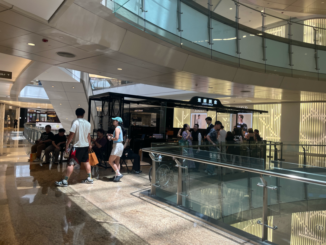 (万象城二楼中庭的老铺黄金店面 李明珠/摄)
