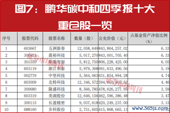 首先以鹏华基金投资总监闫思倩为例,她的代表作鹏华碳中和2025年也曾一度领跑权益排行榜。从最新的四季报来看,她的组合重仓风格仍然保持了格外青睐人形机器人赛道的风格。不过,其相对均匀和分散的风格仍然体现得淋漓尽致,表现在前三大重仓股的配比在6%~6.5%的区间内,而且第一重仓股震裕科技和第二重仓股五洲新春(维权)的被持仓占比同为6.33%。