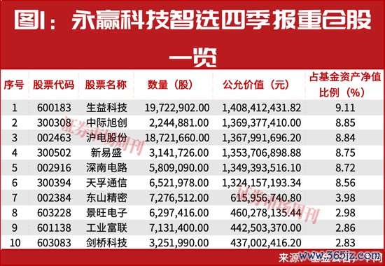 同时,与之前连续两个季度牢牢让“易中天”锁定前三不同,本季度的三大重仓股变成了生益科技、中际旭创、沪电股份,特别是作为PCB下沉领域覆铜板赛道的龙头股生益科技,当季度被任桀大幅加仓至第一重仓股,该股在近三个月的涨幅约为25%。